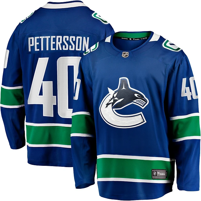 Maillot d'évasion à domicile des Canucks de Vancouver bleu Fanatics Elias Pettersson pour hommes