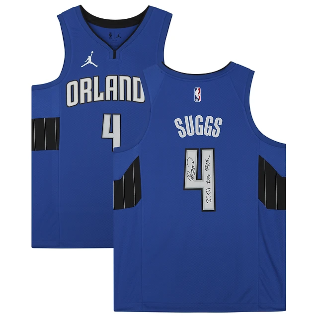 Maillot Jordan Brand bleu autographié par Jalen Suggs des Orlando Magic avec l'inscription « 2021 #5 Draft Pick »