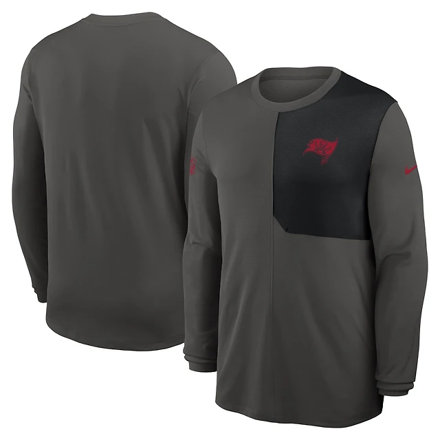 Maillot Nike à manches longues Dri-FIT UV Sideline Coach des Buccaneers de Tampa Bay pour homme, couleur étain