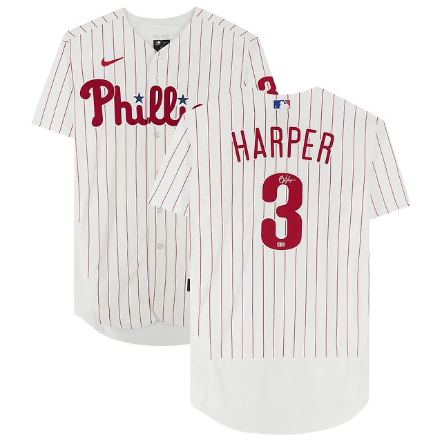 Maillot Nike authentique autographié par Bryce Harper White des Philadelphia Phillies