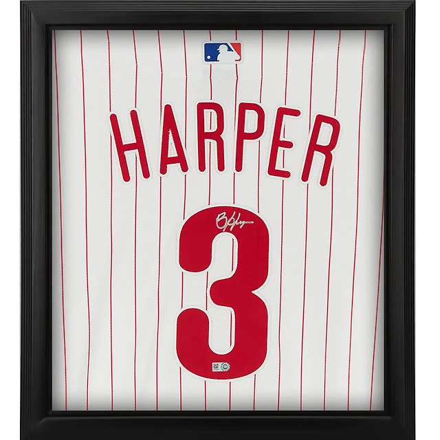 Maillot Nike authentique blanc autographié par Bryce Harper des Philadelphia Phillies Shadowbox