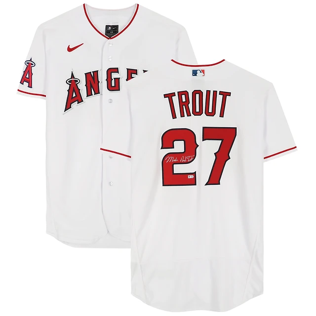 Maillot Nike authentique blanc autographié par Mike Trout des Los Angeles Angels avec signature du nom complet