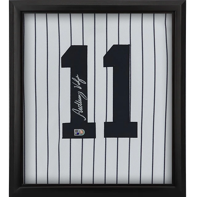 Maillot Nike authentique blanc encadré autographié par Anthony Volpe des Yankees de New York Shadowbox