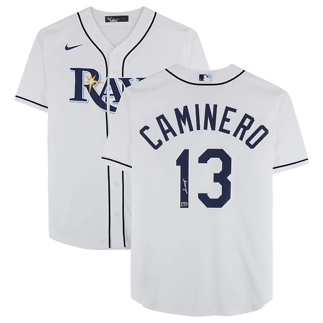 Maillot Nike blanc autographié par Junior Caminero des Tampa Bay Rays