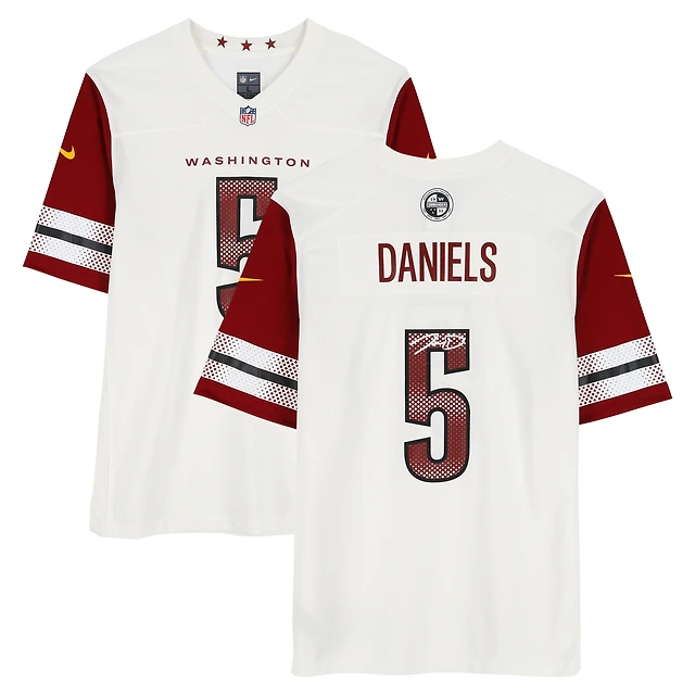 Maillot Nike blanc dédicacé par Jayden Daniels des Washington Commanders