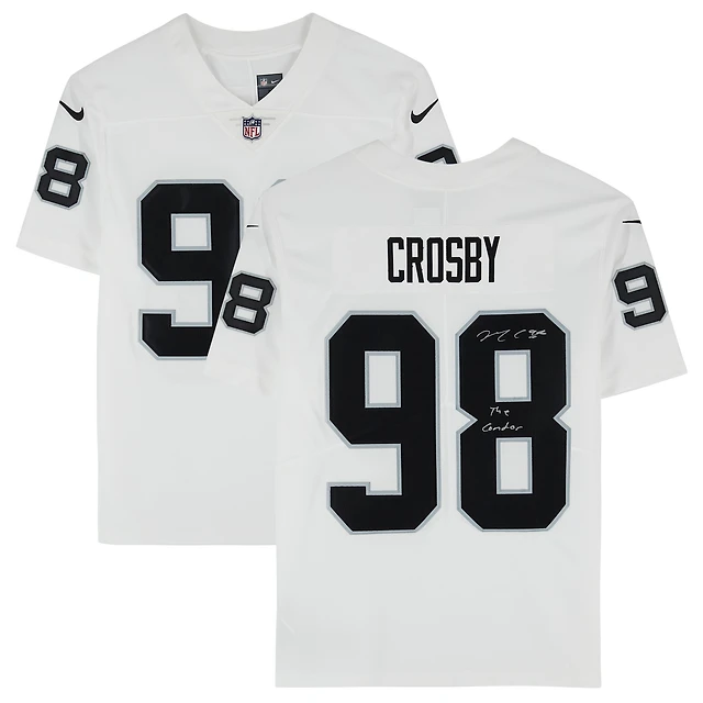 Maillot Nike blanc dédicacé par Maxx Crosby des Las Vegas Raiders avec l'inscription « The Condor »