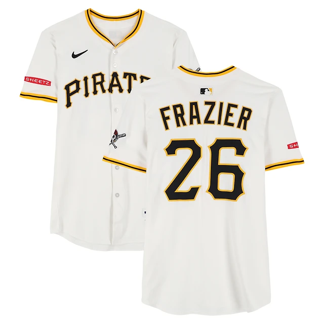 Maillot Nike blanc n° 26 d'Adam Frazier des Pirates de Pittsburgh, utilisé lors de plusieurs matchs de la saison 2025 de la MLB