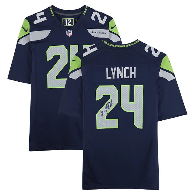 Maillot Nike bleu marine dédicacé par Marshawn Lynch des Seattle Seahawks