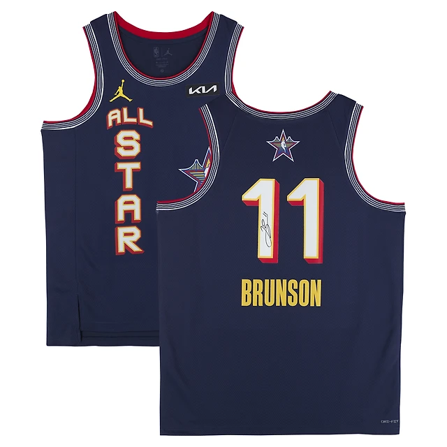 Maillot Nike bleu marine Swingman dédicacé par Jalen Brunson des New York Knicks lors du match des étoiles de la NBA 2025