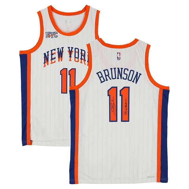 Maillot Nike City Edition Swingman blanc dédicacé par Jalen Brunson des New York Knicks pour la saison 2024-25 avec inscription « NY or Nowhere »