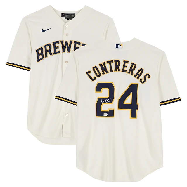 Maillot Nike crème autographié par William Contreras des Milwaukee Brewers