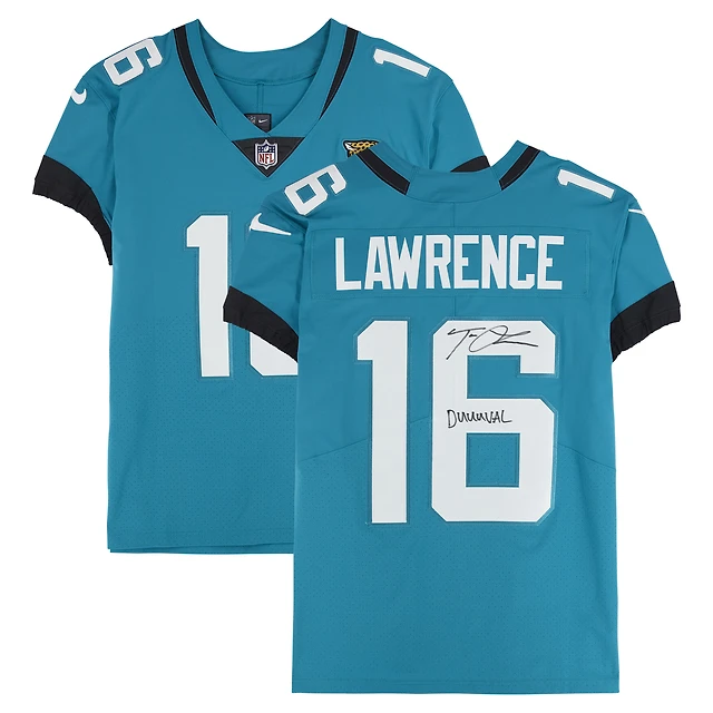 Maillot Nike Elite bleu sarcelle autographié par Trevor Lawrence des Jaguars de Jacksonville avec inscription « Duuuval »