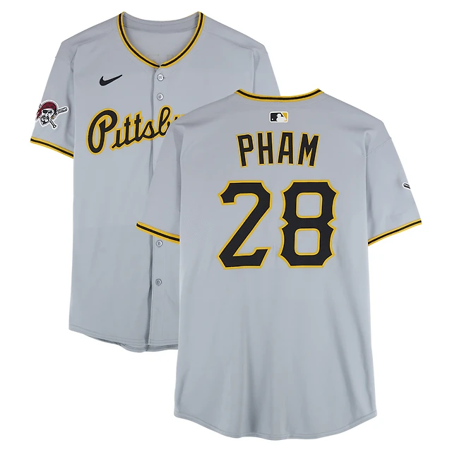 Maillot Nike gris n° 28 de Tommy Pham, des Pirates de Pittsburgh, utilisé lors du match contre les Angels de Los Angeles le 23 avril 2025