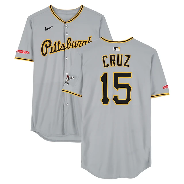 Maillot Nike gris Oneil Cruz des Pirates de Pittsburgh (n° 15) utilisé lors du match contre les Angels de Los Angeles le 23 avril 2025