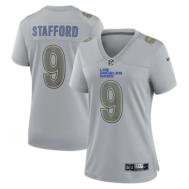 maillot Nike Matthew Stafford pour femme, gris, Los Angeles Rams Atmosphere Fashion Game,
