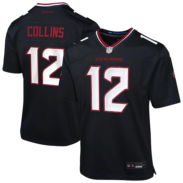 Maillot Nike Nico Collins bleu marine pour jeune des Houston Texans