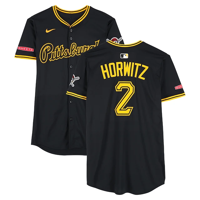 Maillot Nike noir n° 2 de Spencer Horwitz, des Pirates de Pittsburgh, utilisé lors du match contre les Phillies de Philadelphie, le 17 mai 2025