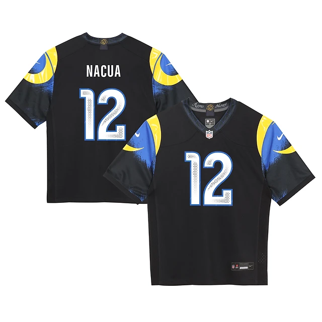 Maillot Nike Puka Nacua bleu nuit pour enfant, collection Rivalries 2025 des Los Angeles Rams