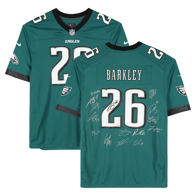 Maillot Nike Saquon Barkley vert nuit dédicacé par les Philadelphia Eagles lors du Super Bowl LIX, avec 15 signatures - Édition limitée à 10 exemplaires