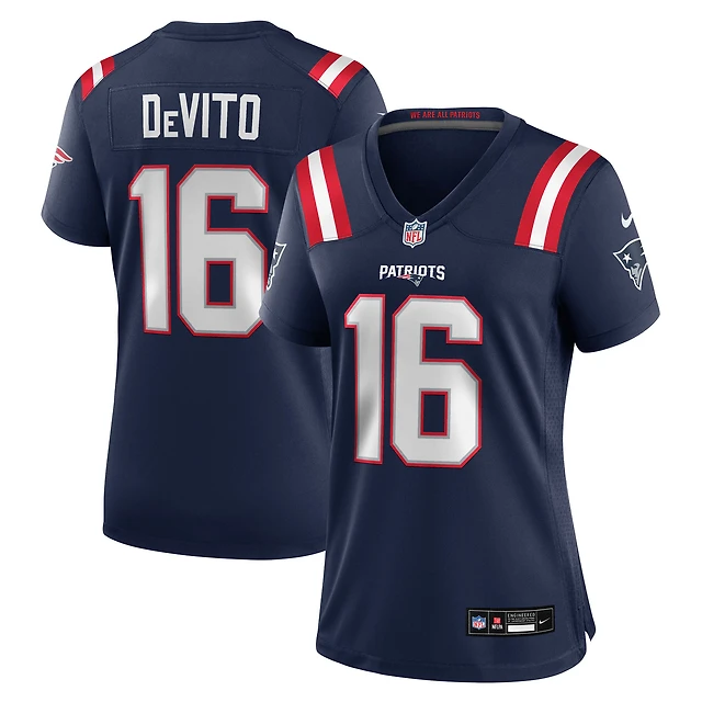 Maillot Nike Tommy DeVito bleu marine pour femme des New England Patriots