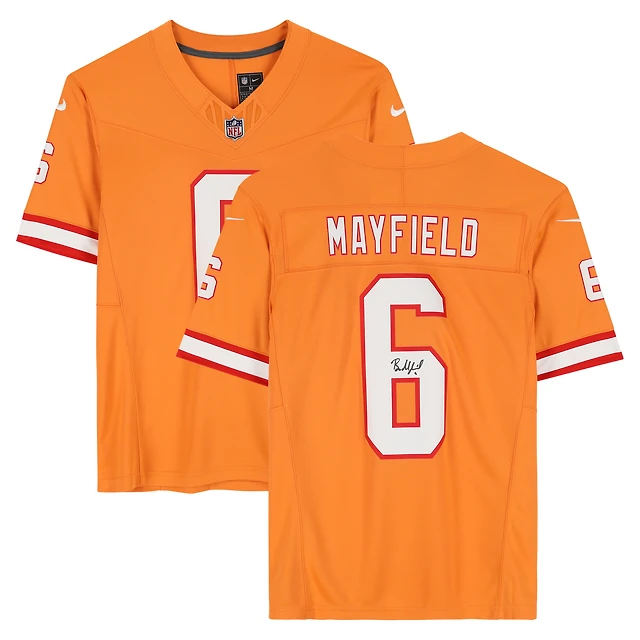 Maillot Nike Vapor Fuse orange dédicacé par Baker Mayfield des Tampa Bay Buccaneers