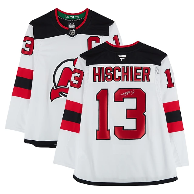 Maillot premium blanc dédicacé par Nico Hischier des Devils du New Jersey