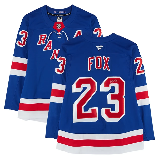 Maillot premium bleu dédicacé par Adam Fox des Rangers de New York