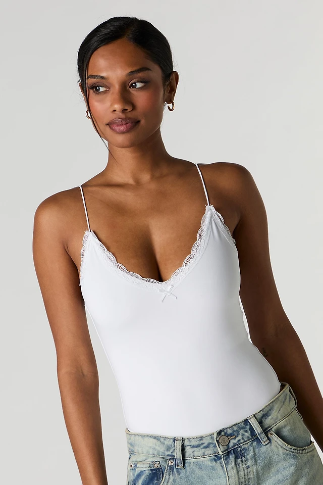 Maillot profilé à encolure en V et liséré de dentelle