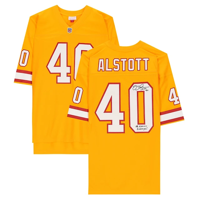 Maillot réplique autographié par Mike Alstott des Tampa Bay Buccaneers par Mitchell & Ness Orange Throwback avec inscription « SB XXXVII Champs »