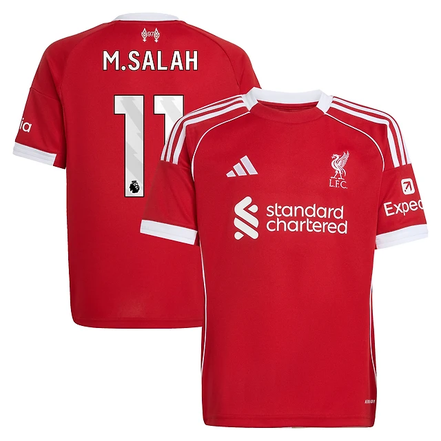Maillot réplique domicile rouge adidas Mohamed Salah Liverpool 2025/26 pour jeunes