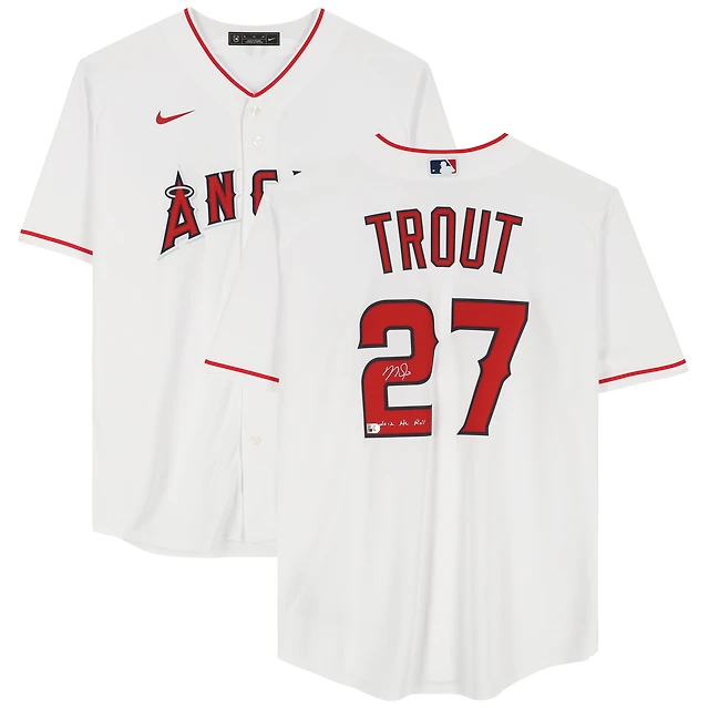 Maillot réplique Nike blanc autographié par Mike Trout des Los Angeles Angels avec inscription « 2012 AL ROY »