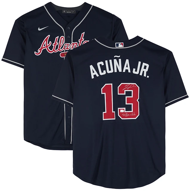 Maillot réplique Nike bleu marine autographié par Ronald Acuña Jr. des Atlanta Braves avec inscription « 40/70 Club »