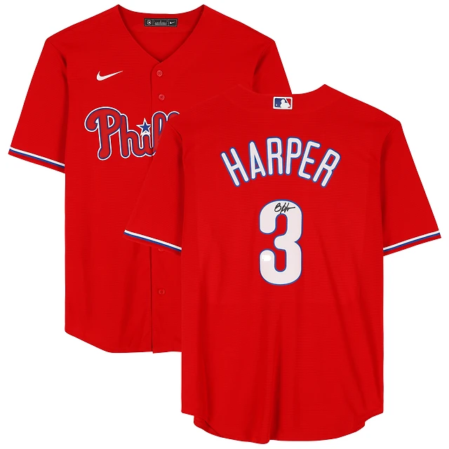 Maillot réplique Nike rouge autographié par Bryce Harper des Philadelphia Phillies