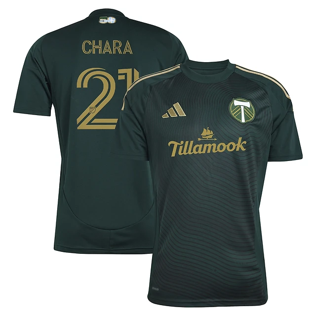Maillot réplique vert et or de joueur Portland Timbers 2025 Diego Chara pour homme adidas
