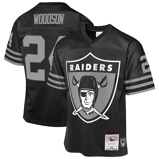 Maillot rétro Mitchell & Ness Charles Woodson noir des Las Vegas Raiders 1998 pour jeunes