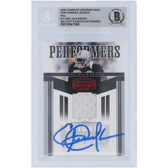Maillot rouge des Raiders de Los Angeles autographié par Eric Dickerson, relique n° PR-15, signé Donruss Gridiron Gear 2006, carte authentique signée Beckett Fanatics