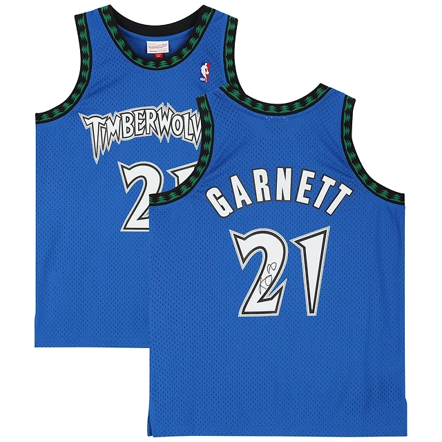 Maillot Swingman bleu autographié par Kevin Garnett des Minnesota Timberwolves Mitchell & Ness 2002-03