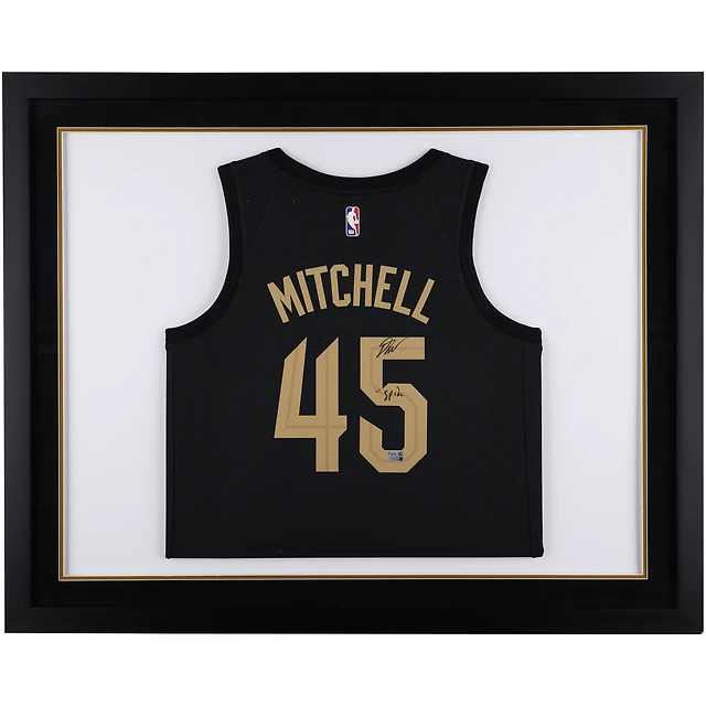 Maillot Swingman Jordan Brand 2022-2023 noir encadré autographié par Donovan Mitchell des Cleveland Cavaliers avec inscription « Spida »