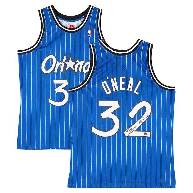 Maillot Swingman Mitchell & Ness 1994-95 bleu dédicacé par Shaquille O'Neal des Orlando Magic avec inscription « HOF 16 »