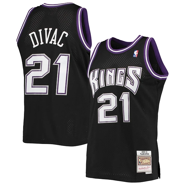 Maillot Swingman Mitchell & Ness Vlade Divac pour hommes, noir, Sacramento Kings 2000/01, Hardwood Classics