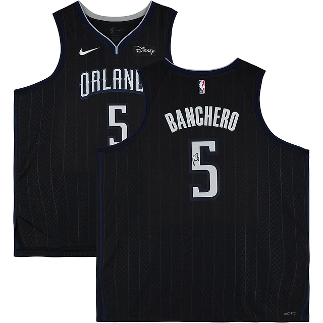 Maillot Swingman Nike City Edition 2022/23 noir dédicacé par Paolo Banchero des Orlando Magic