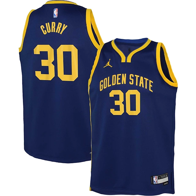 Maillot Swingman Player Jordan Brand Stephen Curry bleu Golden State Warriors 2022/23 pour jeune - Statement Edition