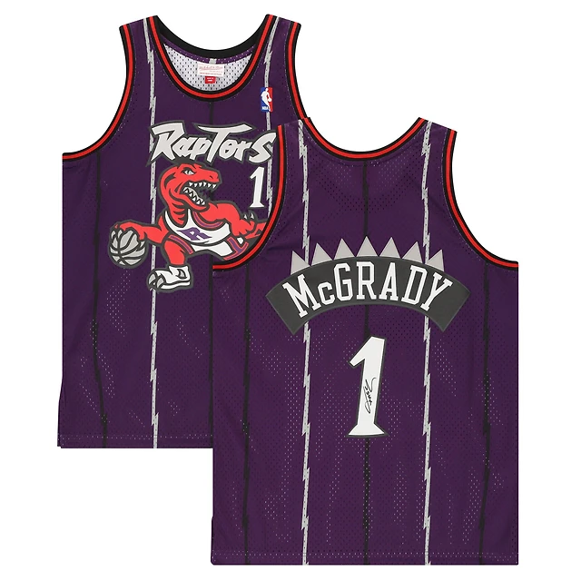 Maillot Swingman violet autographié par Tracy McGrady des Toronto Raptors Mitchell & Ness
