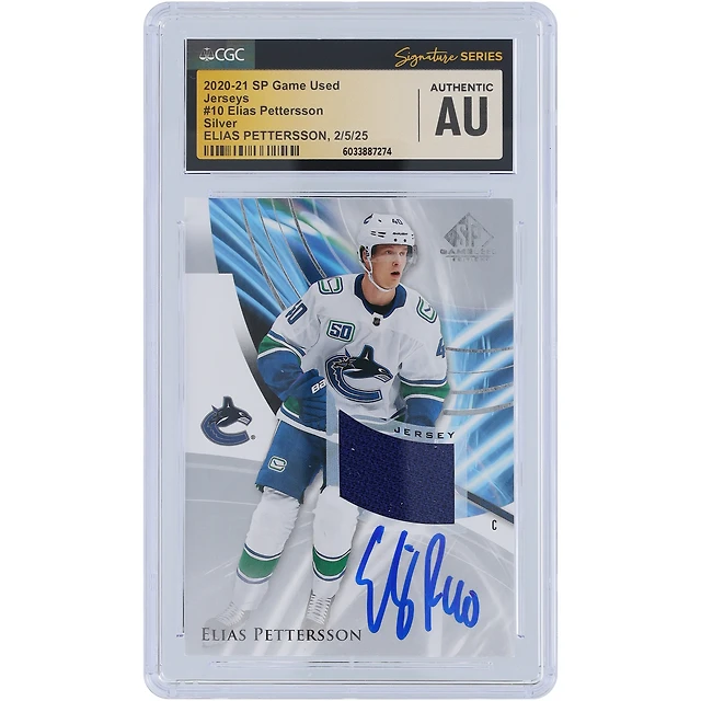 Maillots de match Upper Deck SP 2020-21 autographiés par Elias Pettersson des Canucks de Vancouver, relique argent n° 10, carte authentifiée par les fanatiques de CGC