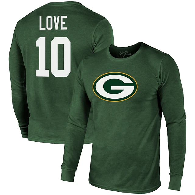 Majestic Threads Jordan Love Green Bay Packers Nom et numéro T-shirt tri-mélange à manches longues pour hommes