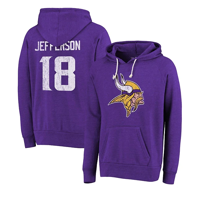 Majestic Threads pour hommes Justin Jefferson Violet Minnesota Vikings Nom et numéro Tri-Blend Pull à capuche