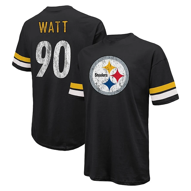 Majestic Threads pour hommes T.J. Watt Black Pittsburgh Steelers Nom et numéro T-shirt surdimensionné