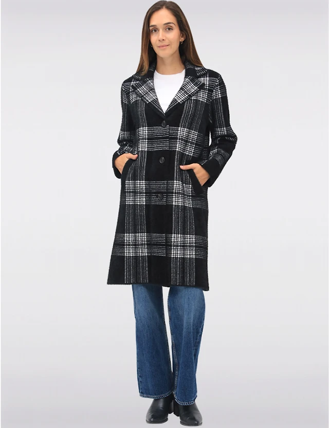 Manteau Tricoté à Col Cranté Motif Carreaux & Simple Boutonnage par Vince Camuto