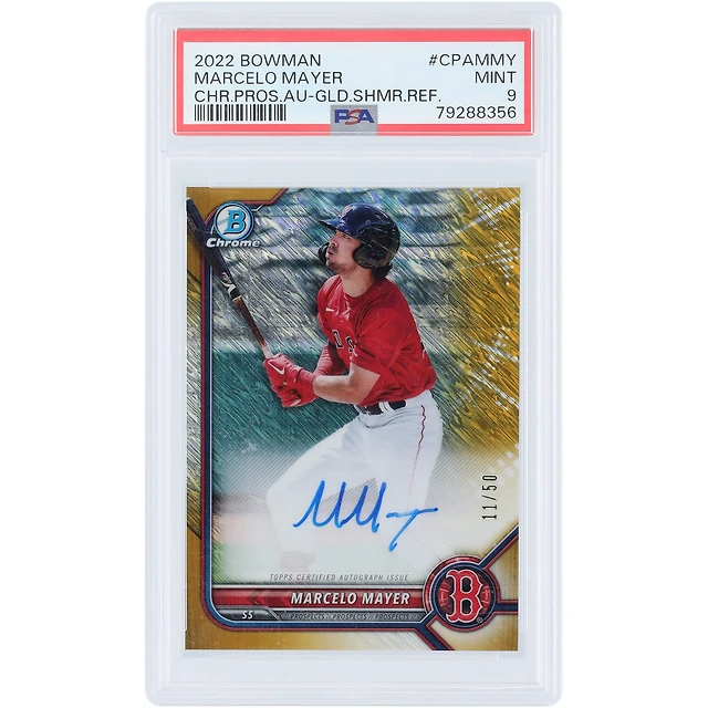 Marcelo Mayer Boston Red Sox Autographed 2022 Bowman Chrome Gold Shimmer Refractor #CPA-MMY #11/50 PSA Authenticated 9 Card