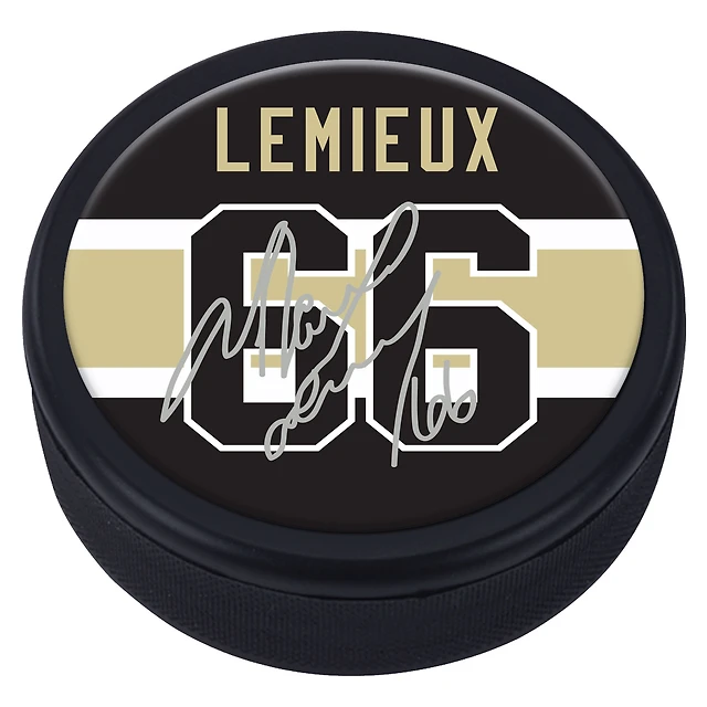 Mario Lemieux Pittsburgh Penguins Puck Souvenir Player avec réplique Signature